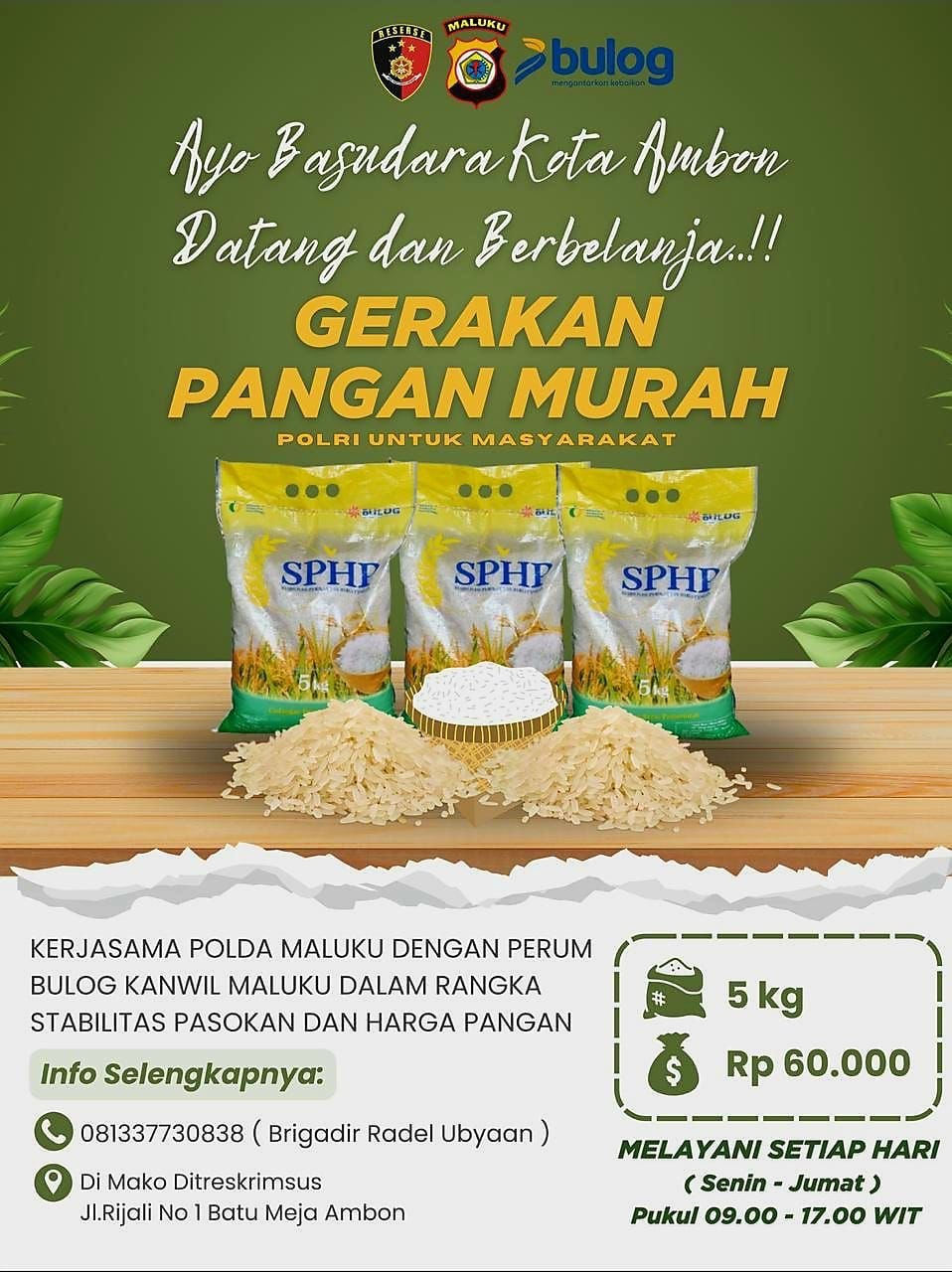 “Hari ini (Senin) Ditreskrimsus berhasil menyalurkan 400 karung beras SPHP ke masyarakat. Harga jualnya Rp. 12.000,- per kilogram atau Rp. 60.000,- per karung beras SPHP kemasan 5 kilogram. Sehingga total hari ini kita salurkan 2 ribu kilogram atau 2 ton,” ungkap Dirreskrimsus Polda Maluku Kombes Pol Piter Yanottama di Ambon, Senin (10/11/2025).