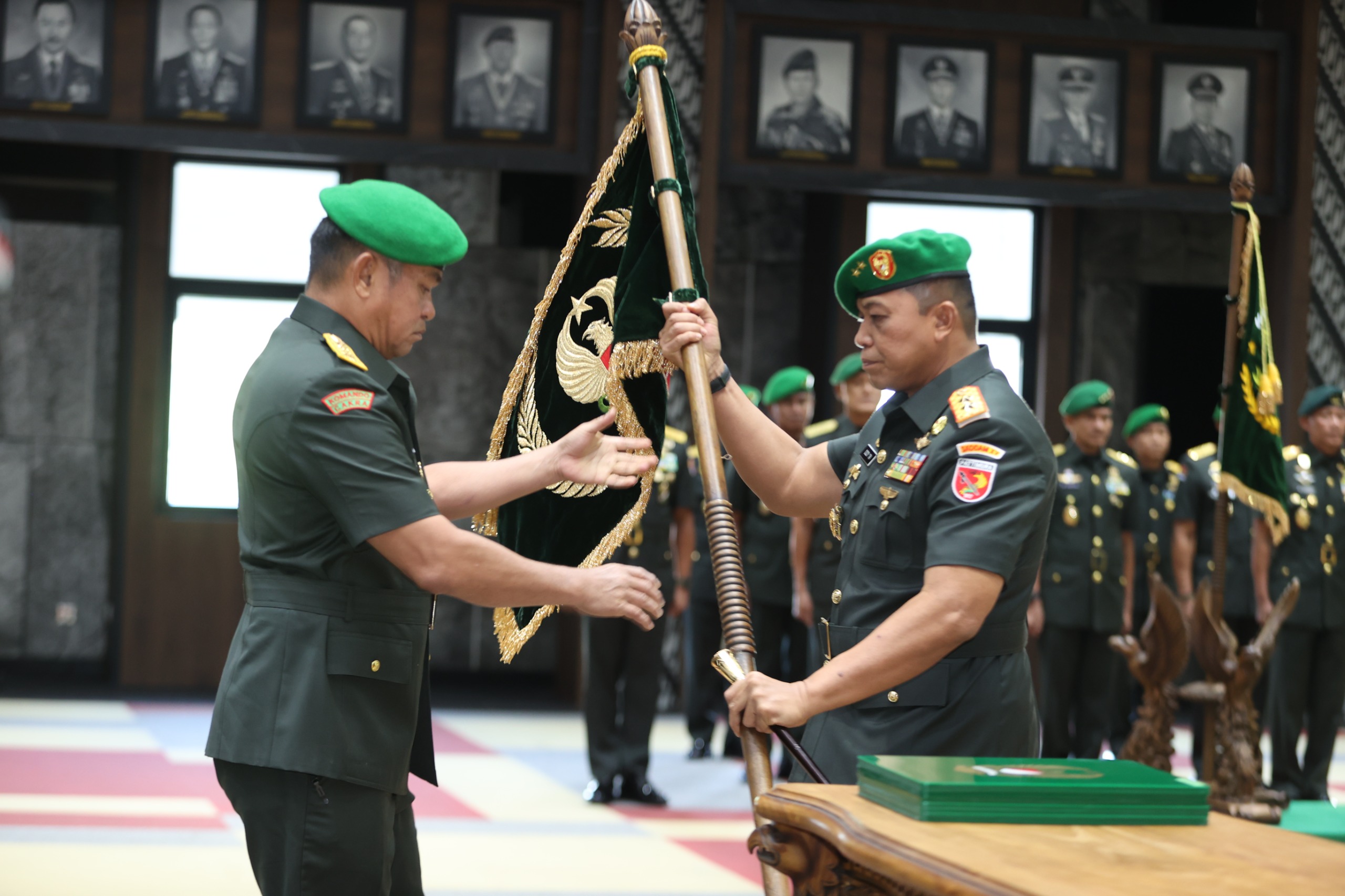 Estafet tongkat komando berlangsung dalam sebuah upacara serah terima jabatan yang dipimpin Kasad Jenderal TNI Maruli Simanjuntak, S.mc di Mabesad, Jakarta pada Rabu (8/4/2026).