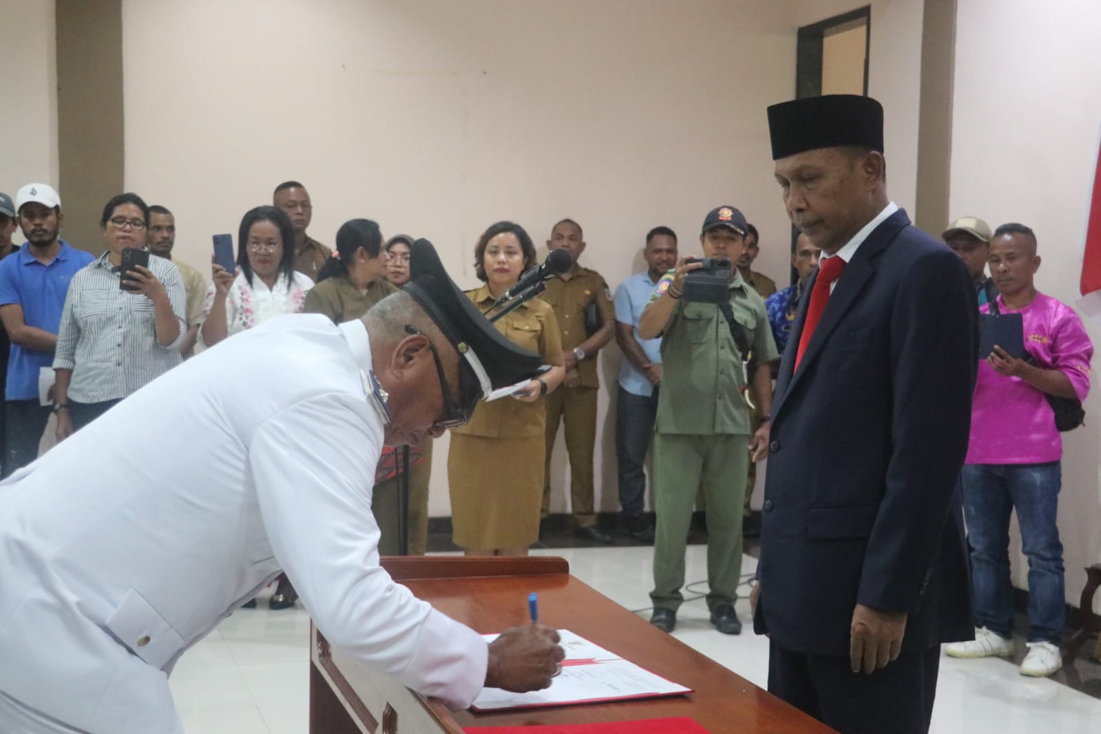 Kelimanya masing-masing Penjabat Kepala Pemerintahan Negeri Ihamahu, Negeri Rutah, Negeri Leinitu, Negeri Aboru, Negeri Kariuw, dan Saniri Negeri Pasanea.