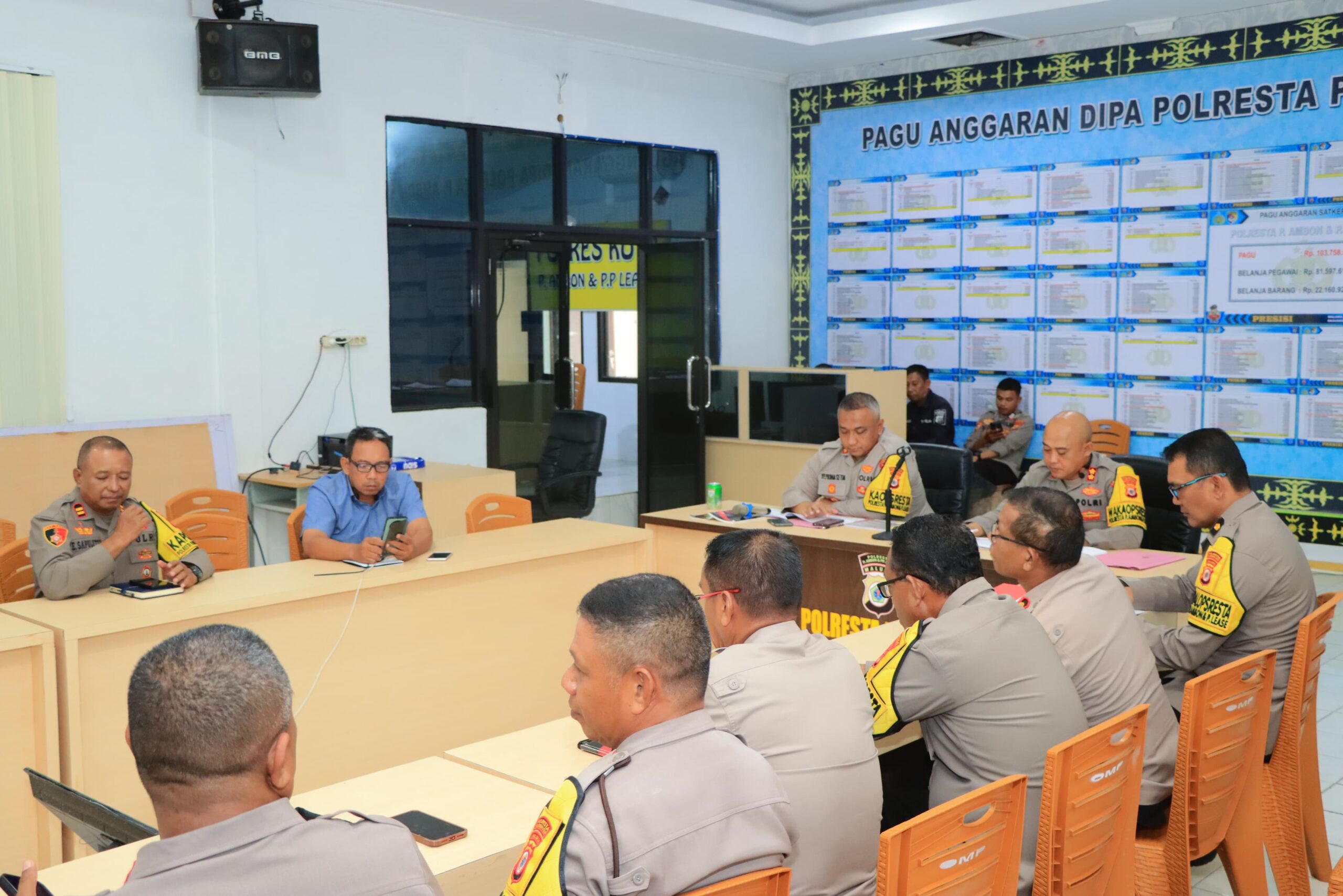 Evaluasi pelaksanaan operasi (Anev) berlangsung di Aula Mapolresta Ambon, Rabu (25/3/2026).
