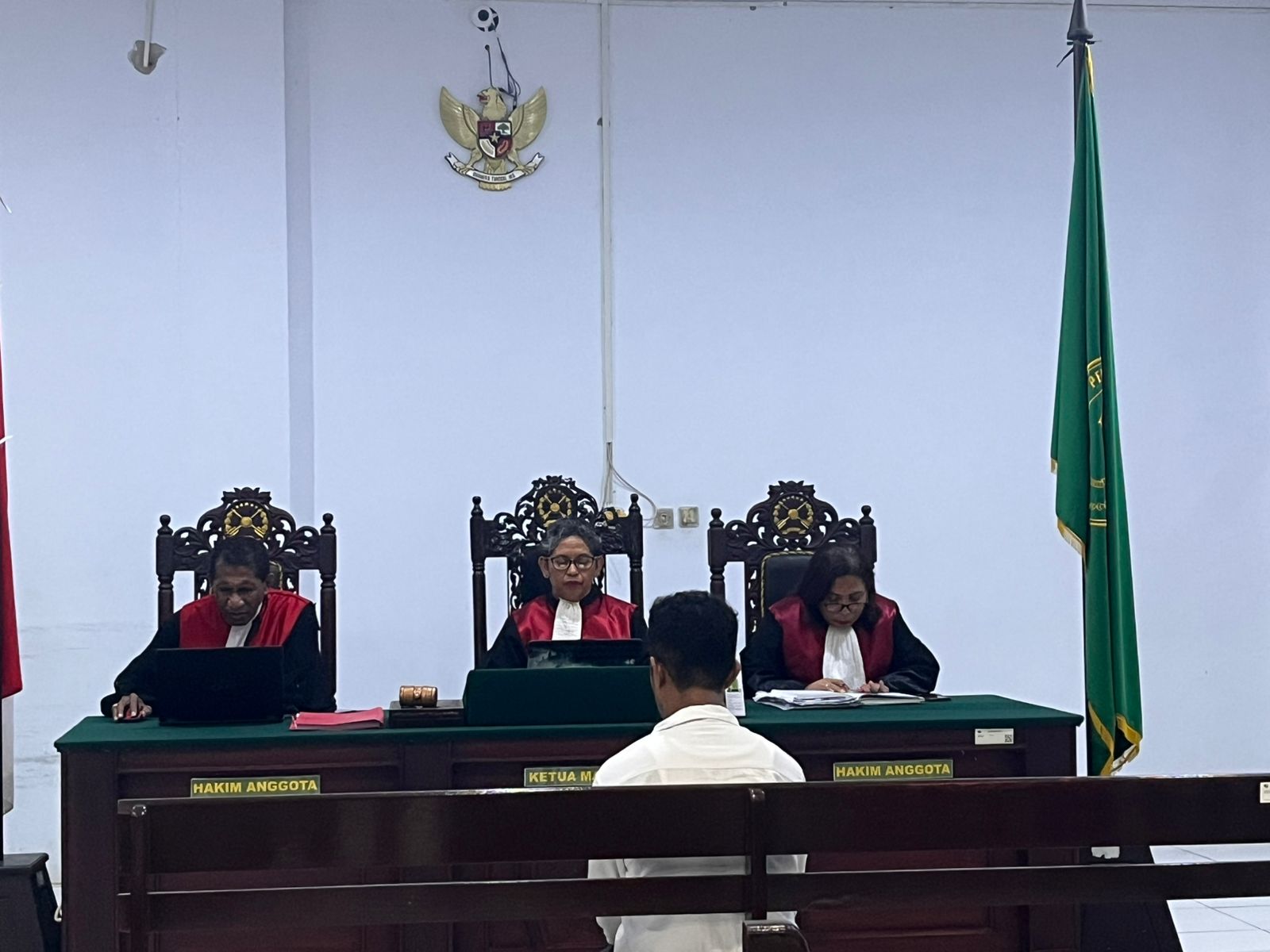 JPU membacakan tuntunnya dalam persidangan yang dipimpin oleh Hakim Ketua Orpa Marthina bersama hakim anggota Rahmat Selang dan Nova Salmon, di Pengadilan Negeri Ambon, Selasa (30/9),